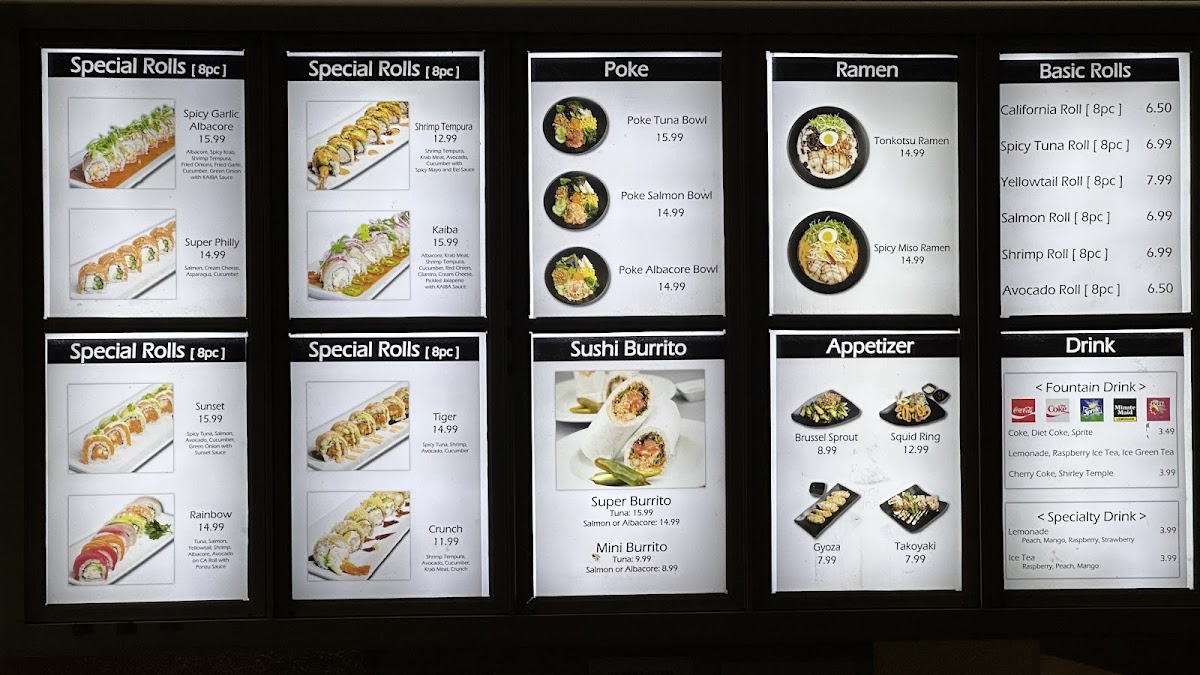 - Sushi Burritos & Poke Bowls: For a twist, try their super burritos, like the Tuna Super Burrito at $19.25, or a Poke Bowl for a refreshing meal.